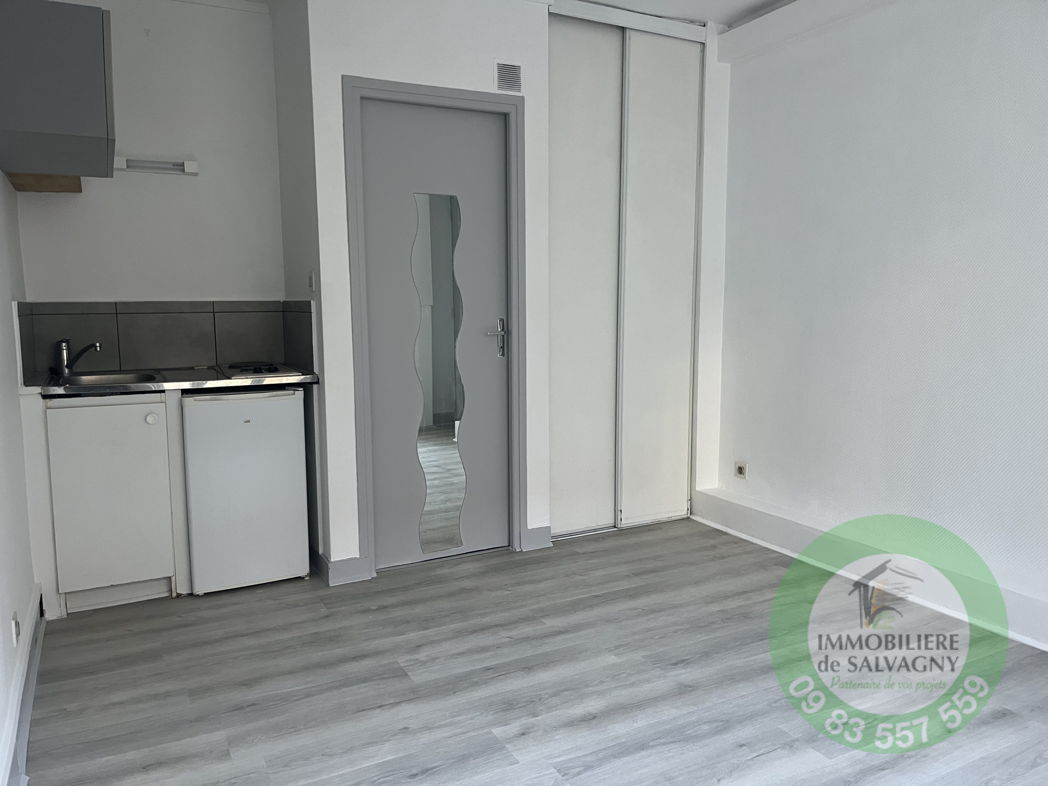 Disponible de suite, IMMOBILIERE DE SALVAGNY vous propose ce studio de 17 m² en location, situé au 1er étage du 21 avenue Félix Faure (angle Gambetta). Immeuble sécurisé, l'appartement se compose d'une pièce de vie avec placard mural, kitchenette (plaque et frigo), d'une salle d'eau avec WC. Refait à neuf dernièrement. Chauffage électrique, ballon d'eau chaude. Loyer charges comprises 566 € / mois dont provision sur charges 15 € (régularisation annuelle). Dépôt de garantie : 551 € TTC. Honoraires à la charge du locataire : 215 € TTC dont état des lieux 50 €. DPE : E. Dépot de candidature sur notre site www.immodesalvagny.fr. Renseignements et visite Immobilière de Salvagny By Pierrefeu Immobilier