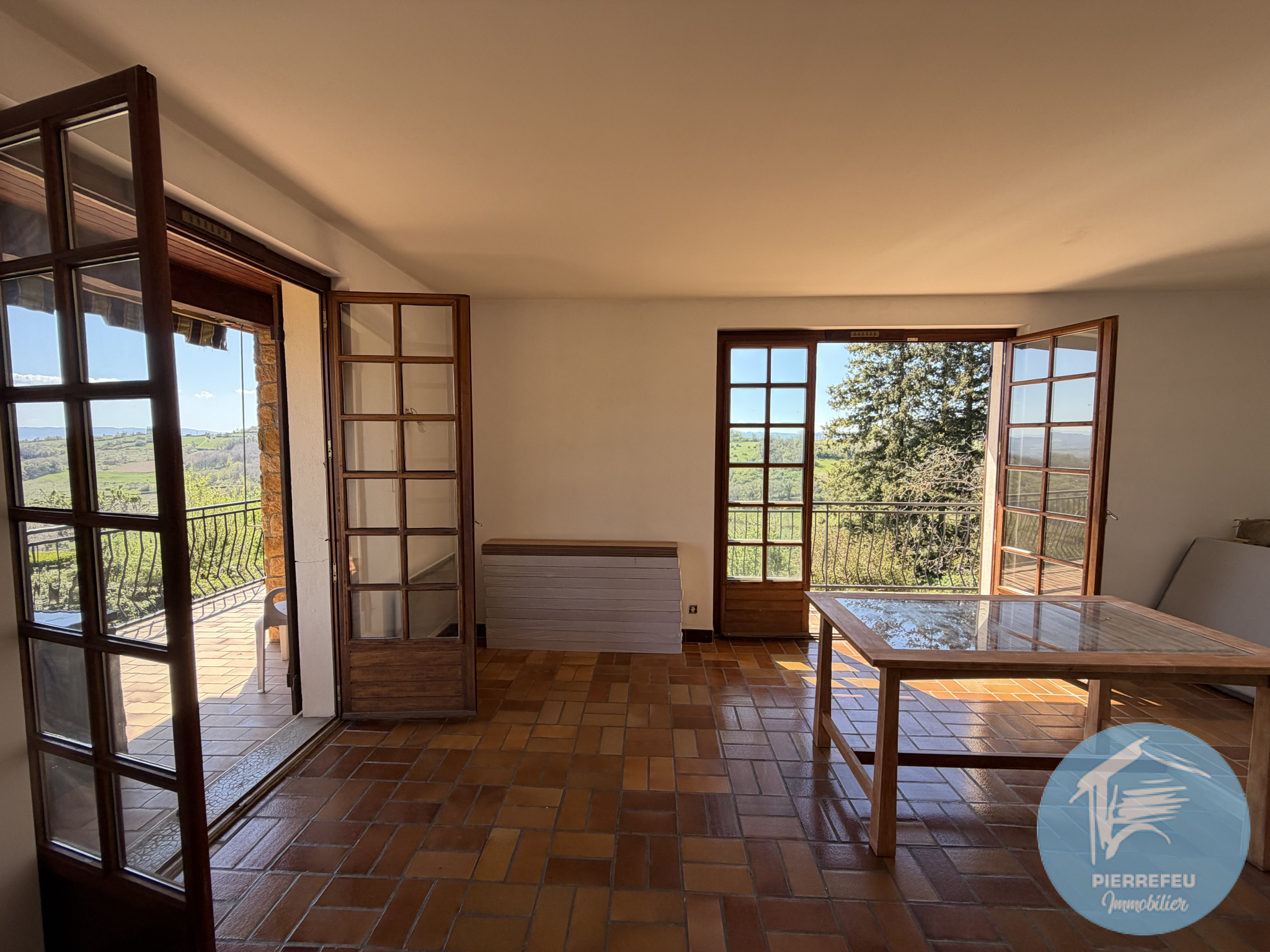 Pierrefeu immobilier vous propose à la vente, située sur les hauteurs de la commune de THEIZÉ, une maison d'habitation indépendante de 1972 élevée d'un étage sur sous-sol complet. Le bien, d'une surface utile totale de 144m2 comprend à l'étage : une entrée, cuisine séparée, salon-séjour avec cheminée, et un dégagement desservant 2 chambres, 1 Sdb et un Wc. Un sous-sol complet (atelier, cave et garage de 37m2) complètent le bien. Chauffage : Électricité et cheminée. Tout à l'égout. Toiture refaite (moins de 10 ans). Maison bien entretenue. Rénovation à prévoir (électricité, sanitaires, etc.). Potentiel Extension (+ annexe). Le tout édifié sur un terrain clos et pentu de plus de 2000m2 (Piscinable et non divisible), Au calme et sans-vis-à-vis. Proxilmité A89 et VSS (15mn). Proximité Bourg et transports scolaires. Visites et renseignements : Muriel Chauplannaz - Agent commercial de la SARL Pierrefeu Immobilier - Immatriculée au R.S.A.C de Lyon sous le numéro 843 741 570.