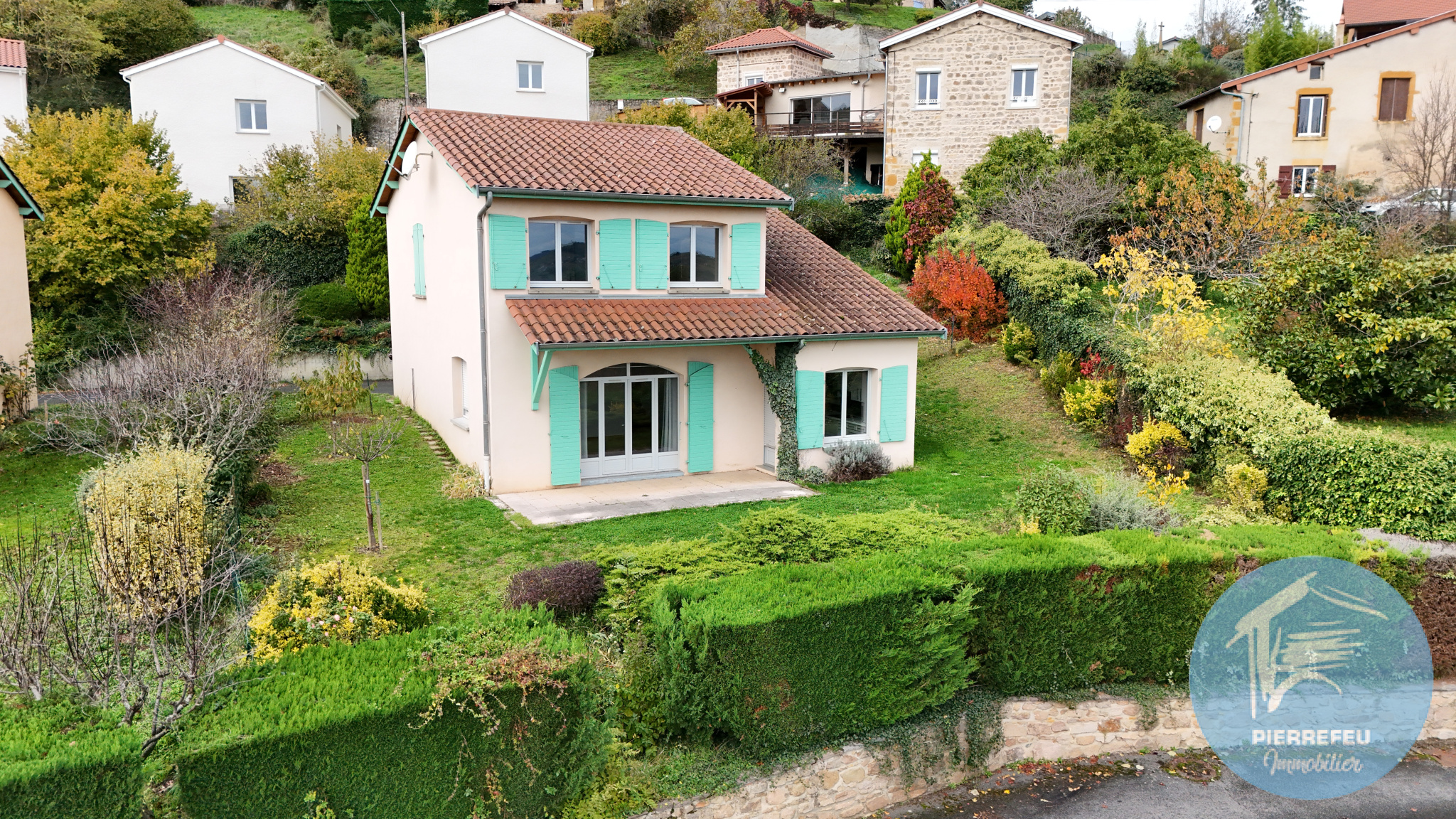 À deux pas du centre du charmant village de SAINT-ROMAIN-DE-POPEY, PIERREFEU IMMOBILIER vous invite à découvrir cette agréable maison individuelle d’environ 112 m² habitables, implantée sur un terrain de plus de 670 m² et bénéficiant d’une belle vue dégagée sur les environs. Au rez-de-chaussée, vous trouverez un salon/séjour lumineux ouvrant directement sur la terrasse et le jardin, une cuisine indépendante, une buanderie ainsi qu’un WC. L’étage dessert quatre chambres, idéales pour acceuillir une famille, ainsi qu’une salle de bains et un second WC. Un garage vient compléter ce bien. Chauffage central au gaz de ville. Idéalement située, cette maison permet de profiter du calme du village tout en restant proche des commodités : boulangerie, écoles, gare SNCF à 5 minutes en voiture et accès à l'autoroute A89 à seulement 10 minutes, facilitant vos déplacements quotidiens. Honoraires à la charge du vendeur.