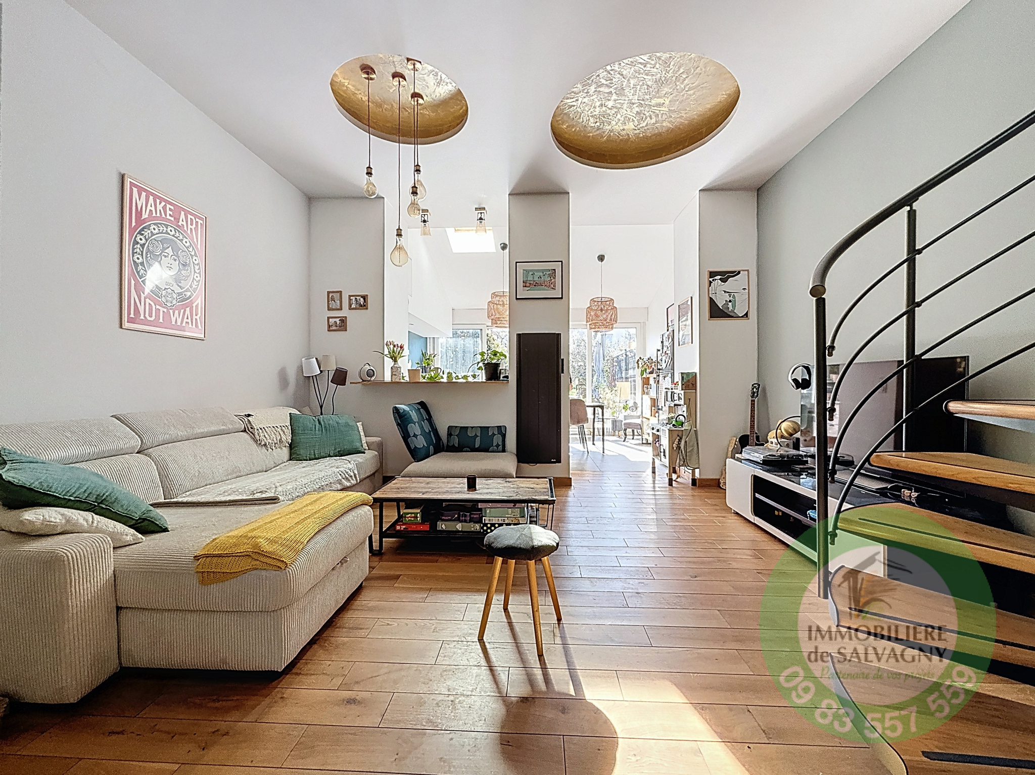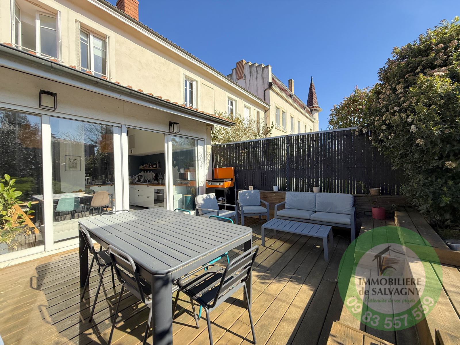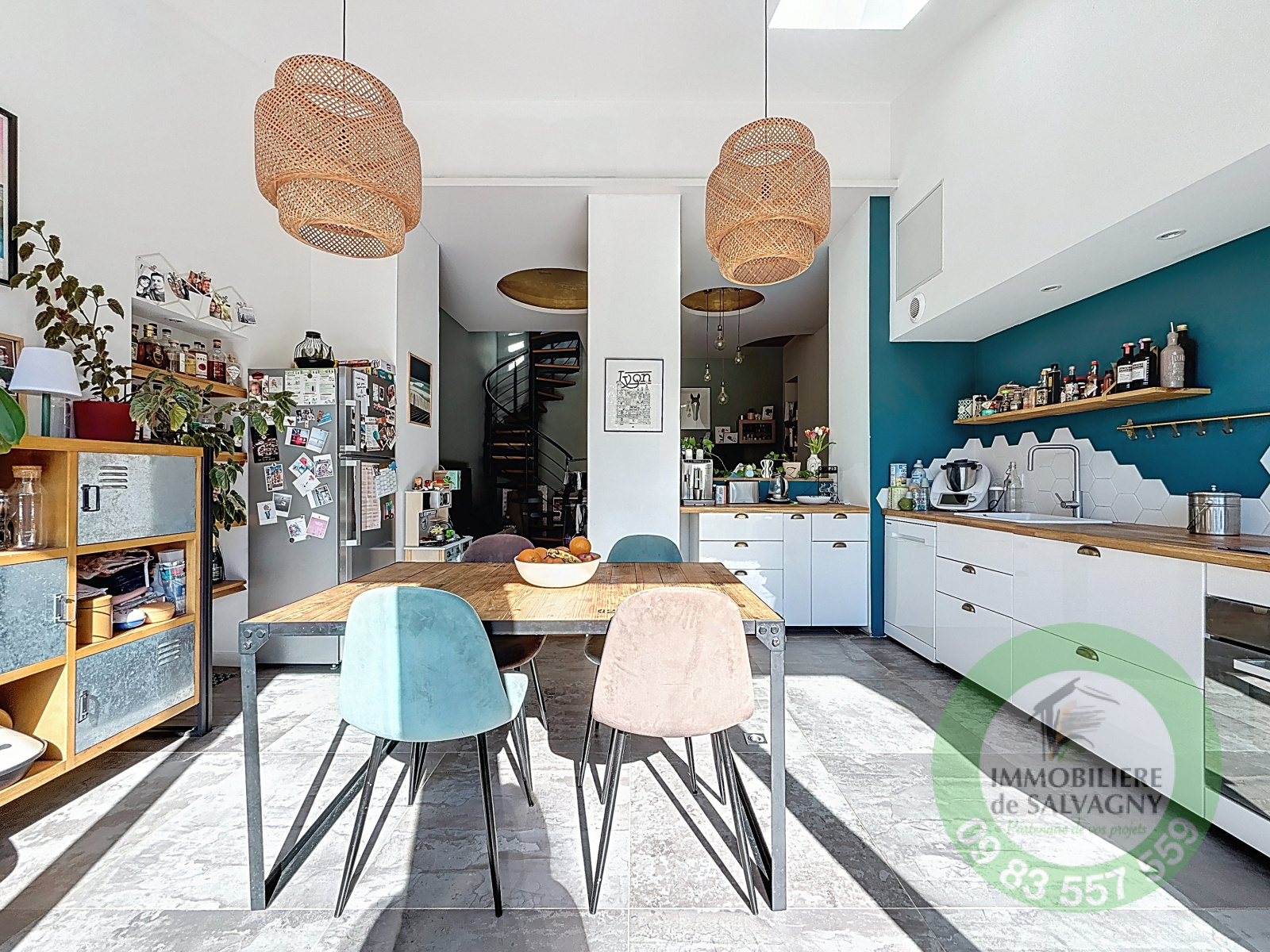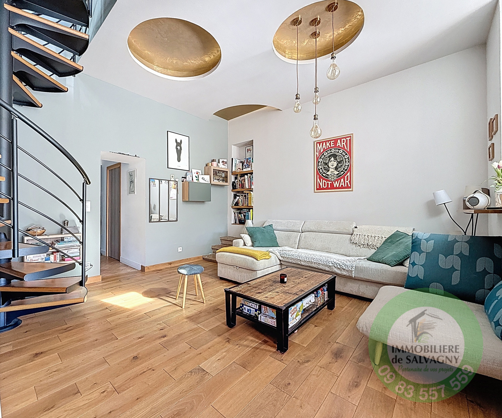 Au sein d'un cadre historique, au calme, IMMOBILIÈRE DE SALVAGNY vous propose un appartement de type LOFT soit un T3 en triplex de 70 m² habitables aux prestations récentes et contemporaines, proche de toutes commodités (écoles, collège, commerces, gare,...). Au rez-de-chaussée : une vaste entrée, une buanderie/ WC, un salon proposant une belle hauteur sous plafond, une grande cuisine lumineuse de 20 m² ouvrant sur une belle terrasse bois et un jardin de 100 m². L'étage dispose d'une chambre en parquet avec placard mural et d'une salle d'eau avec toilettes. Au niveau des combles, une deuxième chambre climatisée avec de nombreux rangemements. Pour tous renseignements et visites, Sylvie Machado Immobilière de Salvagny by Pierrefeu Immobilier