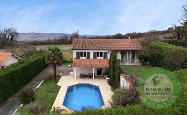 Immobilière de Salvagny vous présente, dans un quartier calme et résidentiel, avec vue dégagée, cette maison d'habitation individuelle (non mitoyenne), lumineuse et parfaitement entretenue offrant une superficie d’environ 133 m² habitables, implantée sur un joli terrain clos et arboré de 821 m², agrémenté d’une piscine idéale pour les beaux jours.